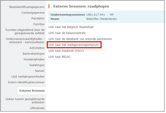 FOD Economie - SPF Economie , Raadpleging van de link naar het werkgeversrepertorium - Consultation du lien vers le répertoire des employeurs